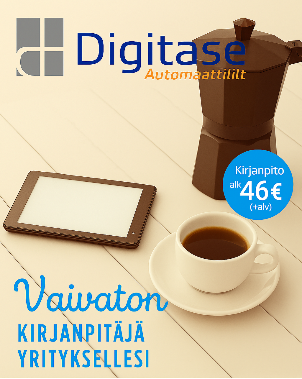 Tehdyssä omistusjärjestelyssä on kyse todellisesta ”kaikki voittaa” -tilanteesta. Entinen omistaja pääsee siirtymään eläkkeelle, toimisto jatkaa samoilla työntekijöillä Kauhavalla ja kirjanpitojärjestelmät saadaan päivitettyä. Tarkoituksenamme on tuoda vaiheittain käyttöön Digitase Oy:n ajanmukaisimmat taloushallinnon työkalut, joilla palvelusta saadaan entistä vaivattomampaa. Panostamme taloushallinnon sähköistykseen ja työvaiheiden automatisointiin, jonka edullisuudesta hyötyy ennen kaikkea asiakasyrittäjä. Nykyisten pienyrittäjän peruspalveluiden lisäksi pystymme tarjoamaan laajemmat palvelut myös kasvavalle yritykselle. Asiakas pääsee hyötymään mm. ostolaskujen sähköisestä kierrosta tai vaikka kokonaan ulkoistetusta taloushallinnosta” kertoo Digitase Oy:n hallituksen puheenjohtaja Mikko Ilves.